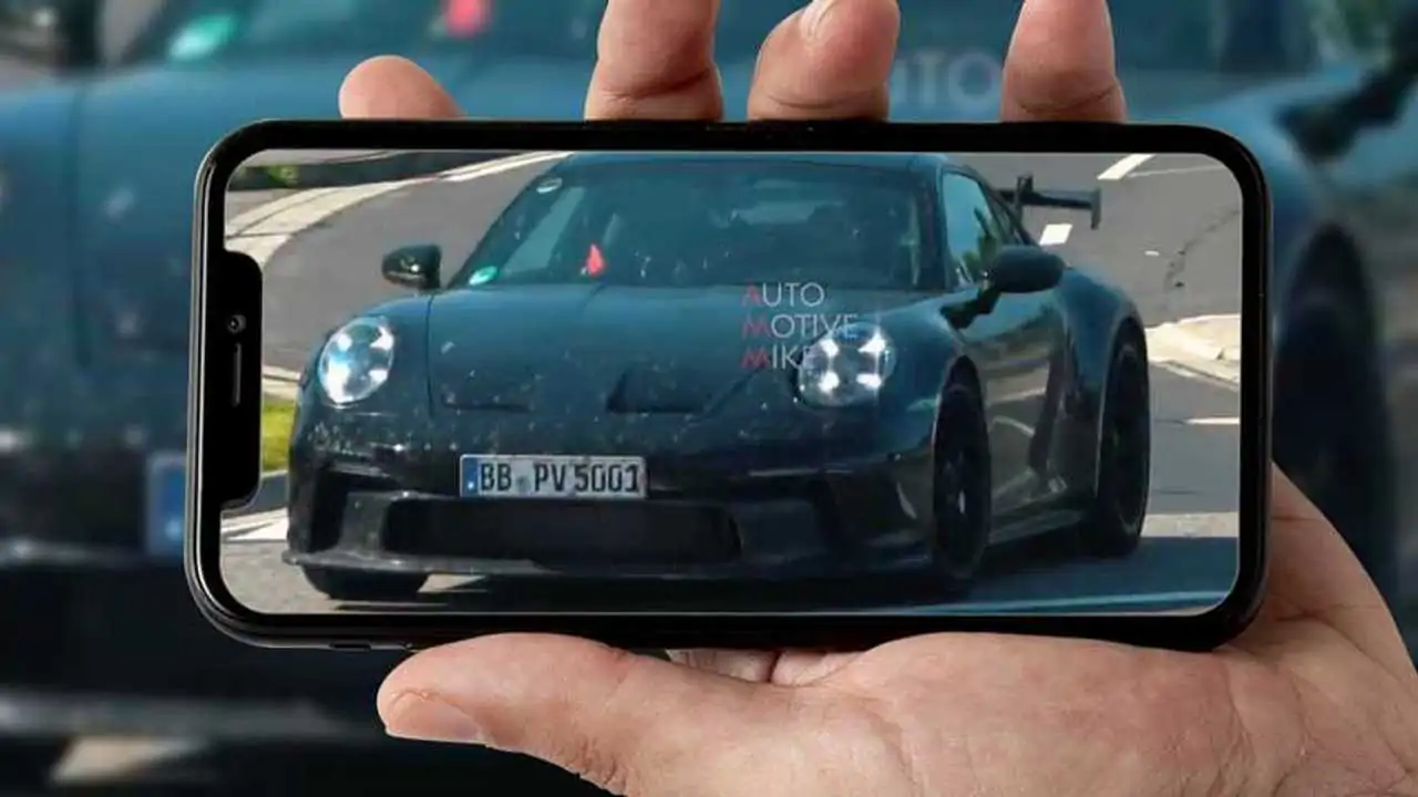 Rispetto alle foto spia precedenti, anche queste scattate durante i test nell'Inferno Verde, non ci sono enormi cambiamenti: rispetto alla Carrera “base”, il paraurti anteriore della GT3 presenta una nuova fascia con un'ampia apertura centrale, oltre a prese d’aria verticali alle estremità del paraurti e sul cofano.
