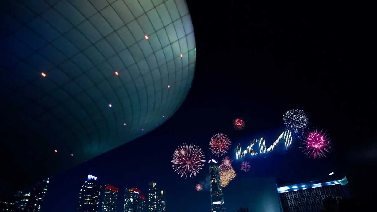 Circa 300 droni hanno lanciato centinaia di fuochi d'artificio in quello che la casa automobilistica definisce "un'esibizione artistica sincronizzata, che accende e celebra il nuovo inizio di Kia". Lo spettacolo ha così permesso alla società di stabilire anche il nuovo record mondiale del maggior numero di veicoli aerei senza pilota (UAV) che lanciano fuochi d'artificio contemporaneamente.