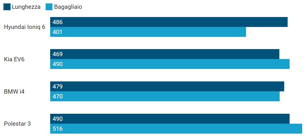 La panoramica dei modelli paragonabili alla Hyundai Ioniq 6 non include per ora moltissime vetture, visto che il panorama elettrico è composto prevalentemente da SUV. Ecco le possibili rivali intorno ai 4,8 metri.