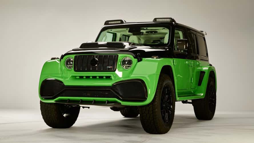 La trasformazione include nuovi paraurti, passaruota allargati, griglia ridisegnata, prese d’aria aggiuntive, enormi cerchi da 20” con pneumatici da 35” o 37”, quattro scarichi, alettone e luci sul tetto. Tra gli optional spicca il contenitore in fibra di carbonio per il ruotino di scorta.