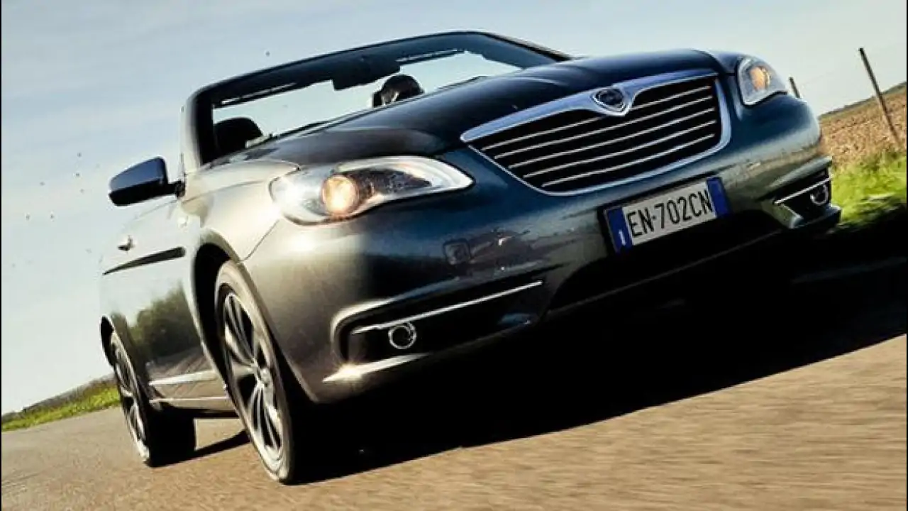 Inutile negarlo, stemmi a parte in termini di stile ci troviamo di fronte ad un clone della 200 cabriolet, tipica cabrio votata al comfort all"americana. Dunque le dimensioni sono poco usuali per le nostre latitudini: i metri che formano la lunghezza sono quasi 5 mentre la larghezza sfiora i 180 centimetri, misure che sopravanzano le rivali (ma solo sul piano delle dimensioni) Audi A5, BMW Serie 3, Mercedes Classe E e Volvo C70. La linea è complessivamente piacevole, con un frontale che dominato da un largo scudo su cui è inserito il logo Lancia e una linea di cintura alta. La linea è complessivamente gradevole e solo il posteriore, che racchiude la capote in tessuto, appare un po" troppo ingombrante rispetto al resto del corpo vettura. Bella l"idea dello stemma con il lettering "Flavia" simile a quello della Lancia anni "60-"70, un po" meno quella delle luci di retromarcia integrate nella parte bassa del paraurti, in una posizione che potrebbe esporle alle rotture. Grigio e bianco sono invece i soli due colori disponibili in catalogo.SPAZIO ALL"APERTO